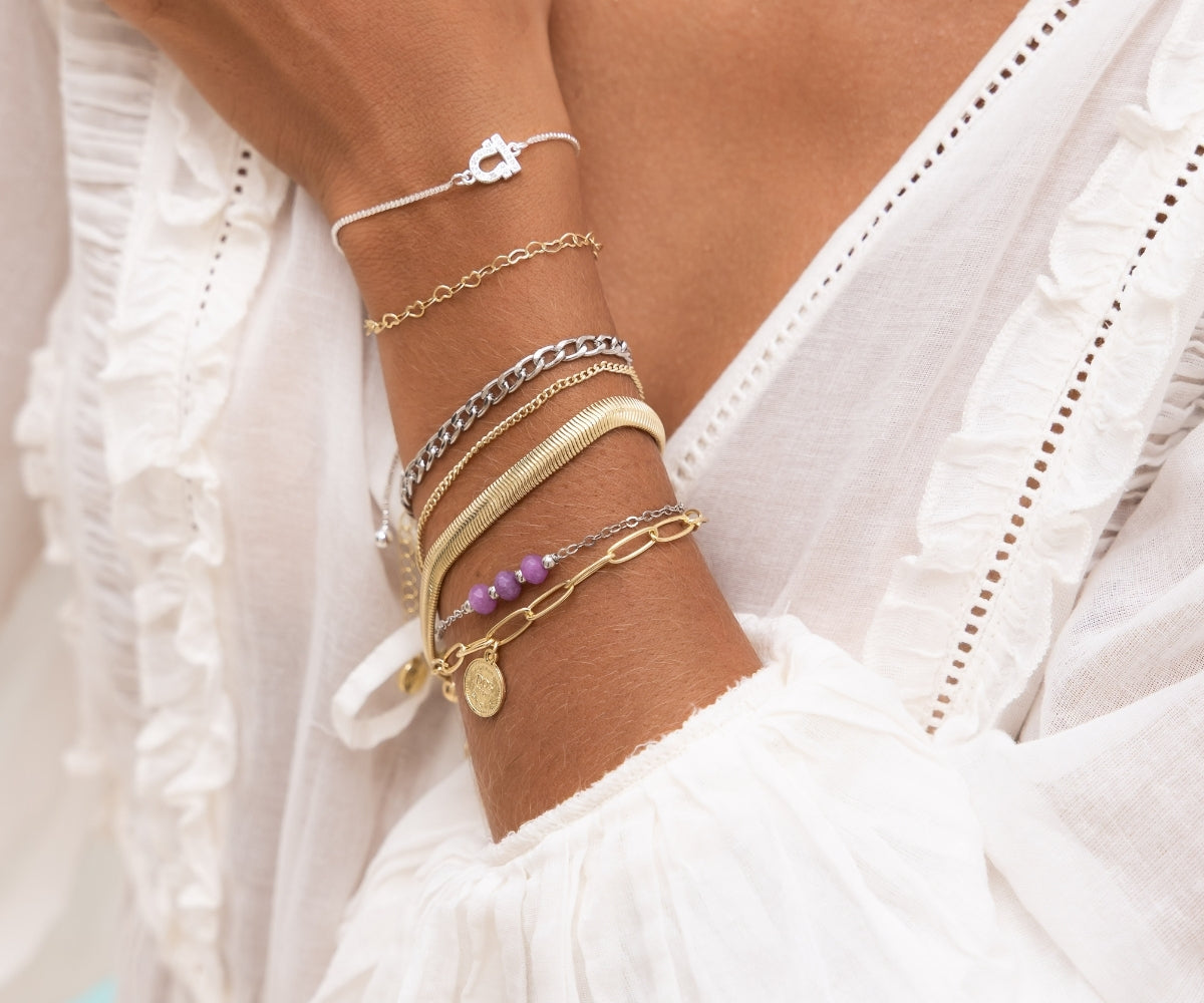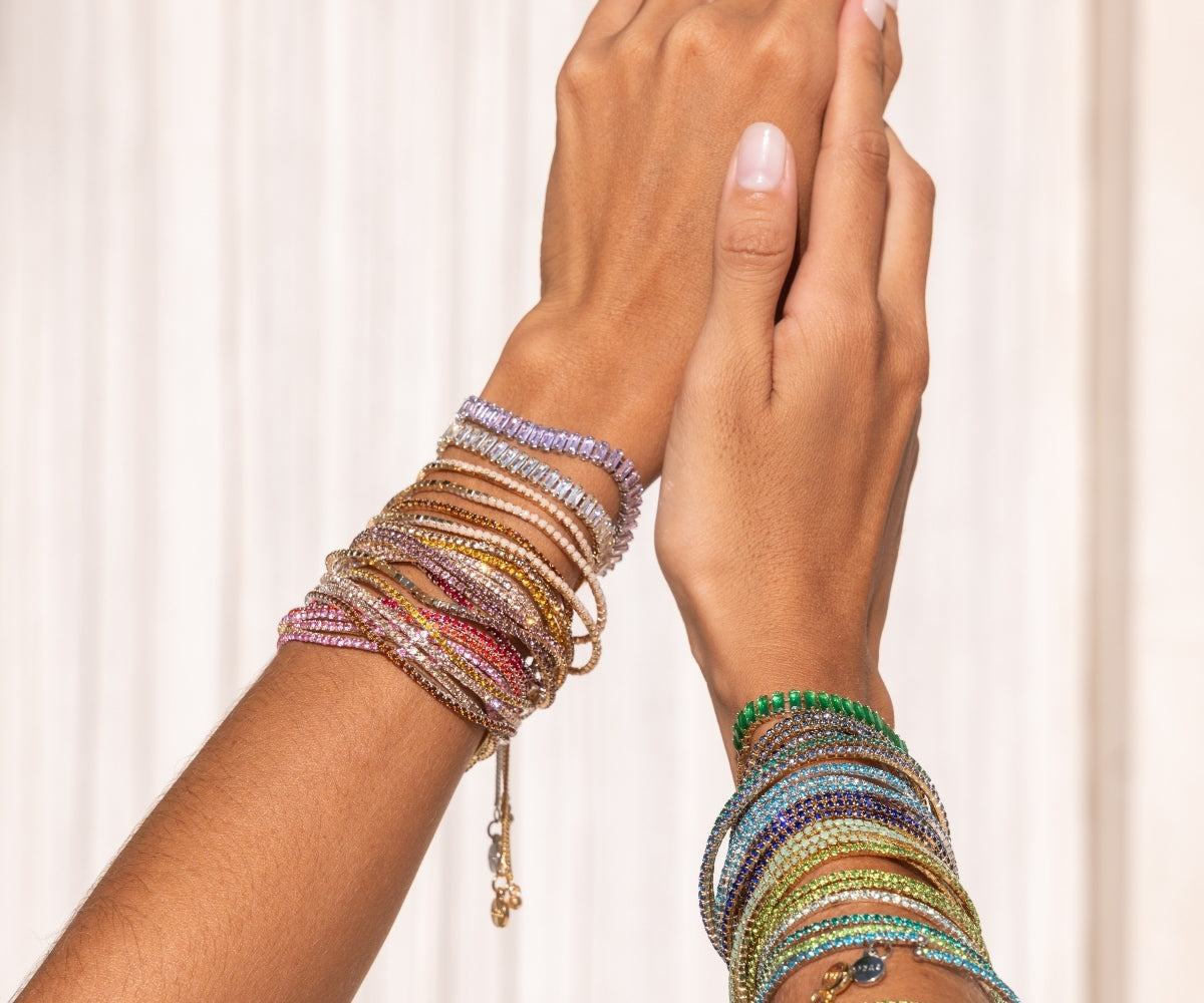 We particularly love the combination of several bracelets in different colours, which become a real eye-catcher thanks to the harmonious overall appearance they create.